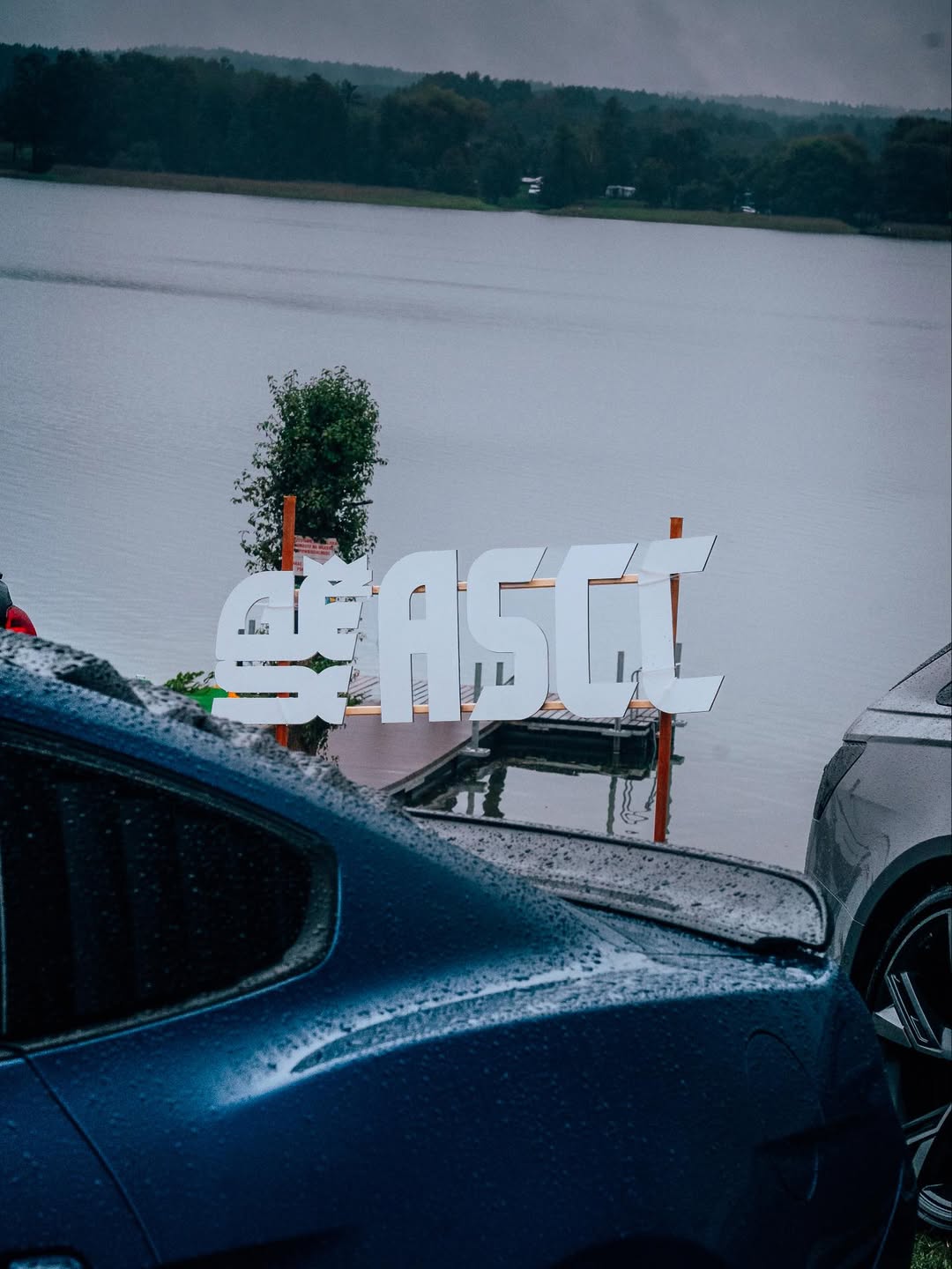 A series of photos presenting multiple performance models parked and displayed in open spaces near water and greenery.