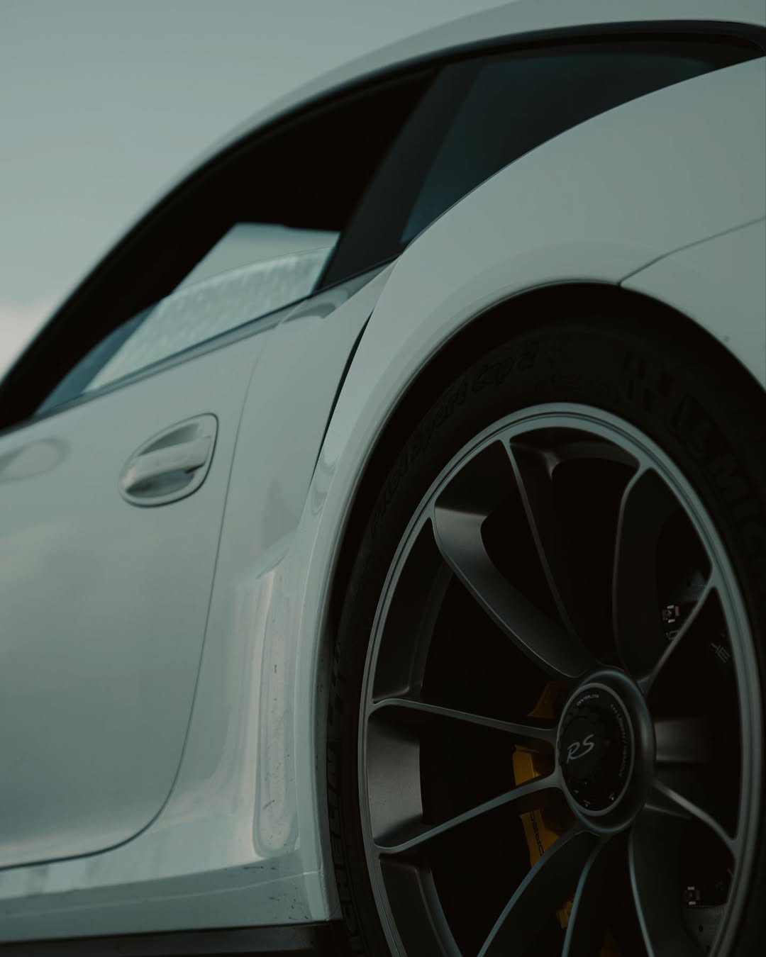 A series of images showing multiple vehicles parked in an open outdoor location, focusing on aerodynamic details, with a mountainous landscape in the background.